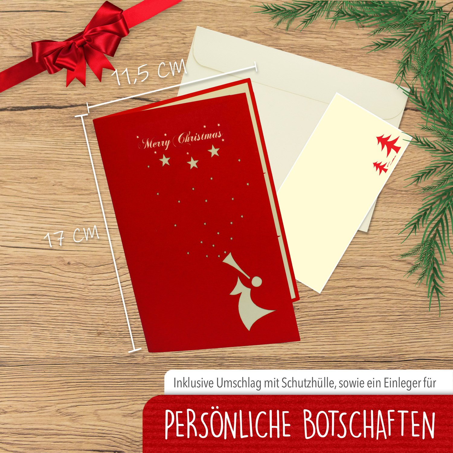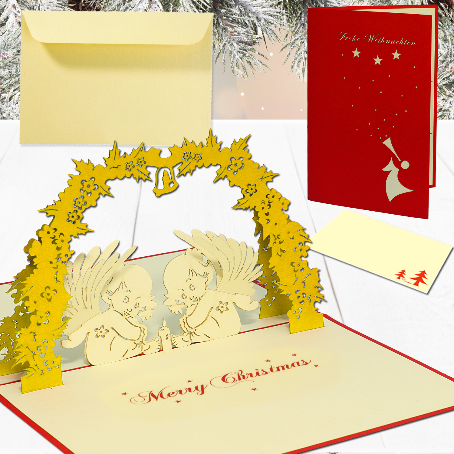 LIN17736, LINPopUp®, Pop Up 3D Karte, Weihnachtskarte, Glückwunschkarte, Engel Mistelzweig, N410 ...Zusatzinformation