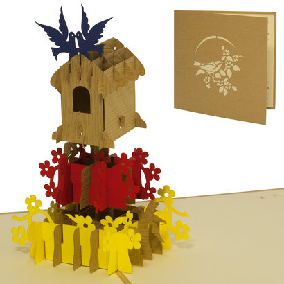 Pop Up 3D Card, Birthday Card, Congratulations Card, Bird House, LIN17226, LINPopUp®, N144