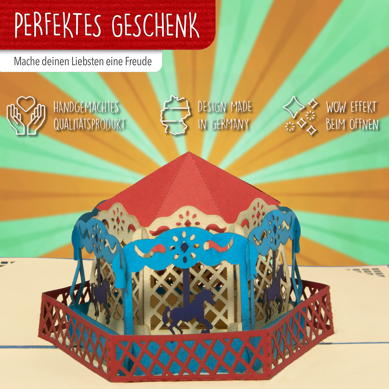 Pop-up card carousel, 3D birthday card, greeting card and thank you card, invitation card for funfair, folk festival, city festival, Oktoberfest, children's birthday party ...More information