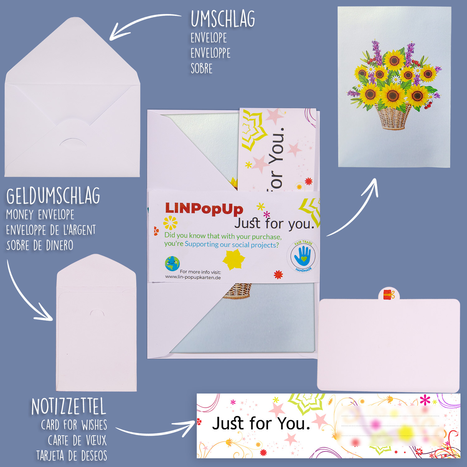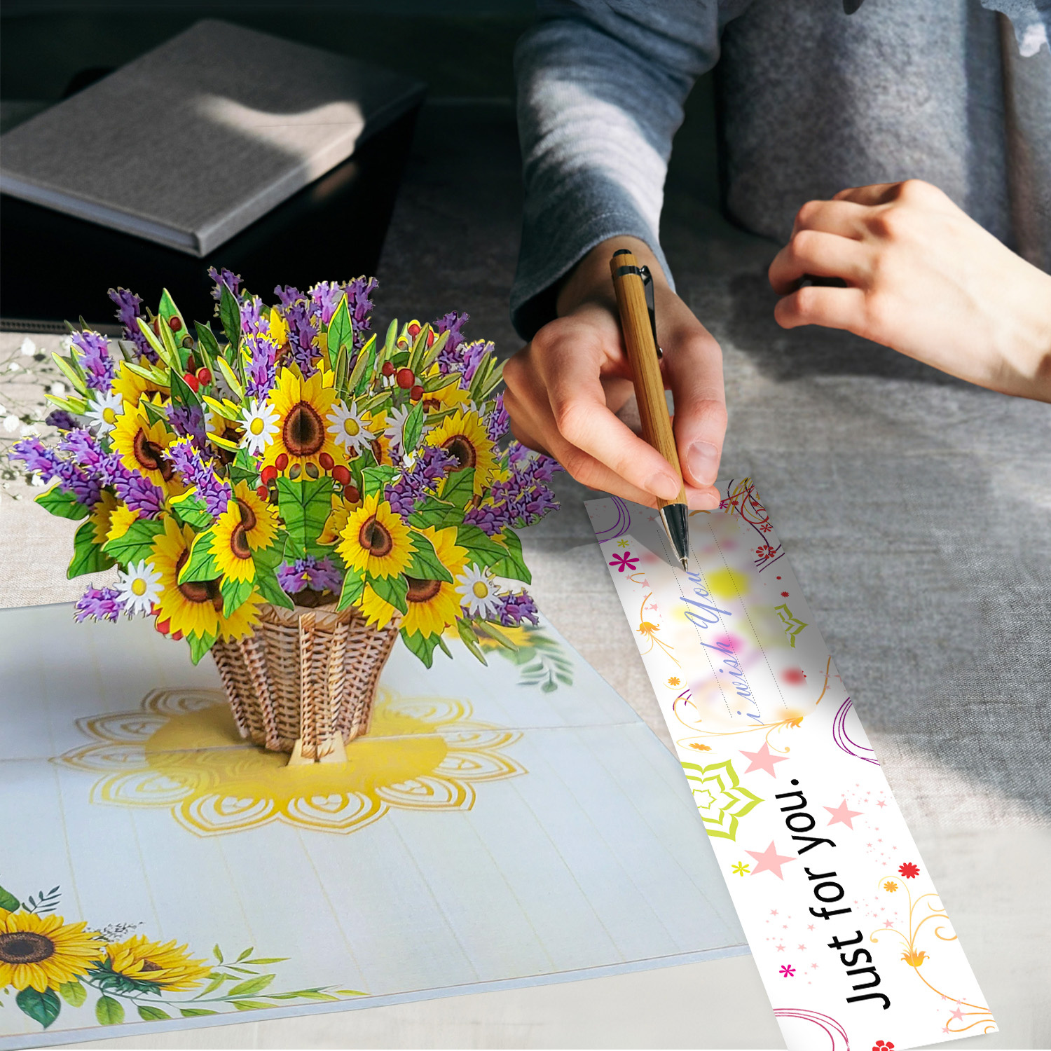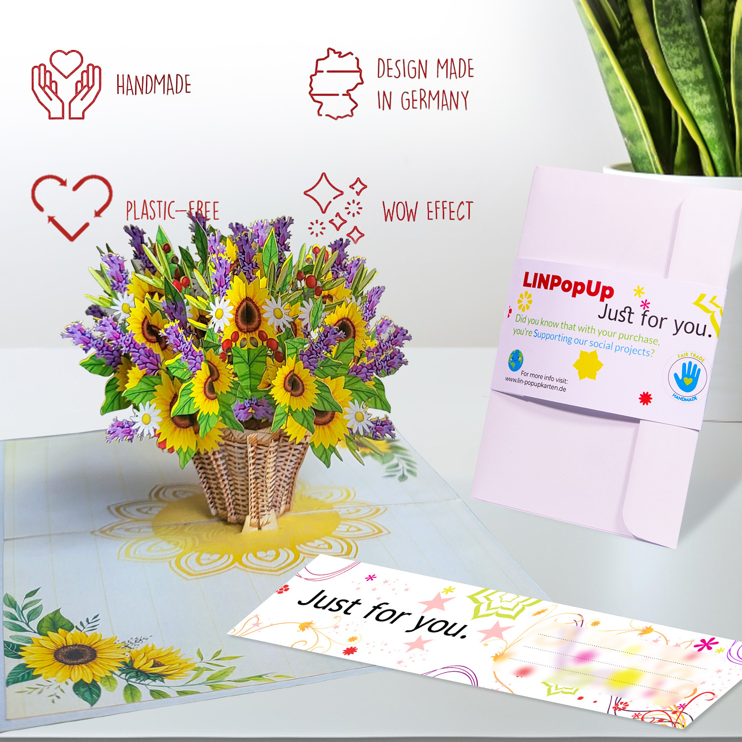 Pop up greeting card with flowers, Birthday greeting card, Mother's day, Sunflowers (15 cm x 15 cm) ...More information
